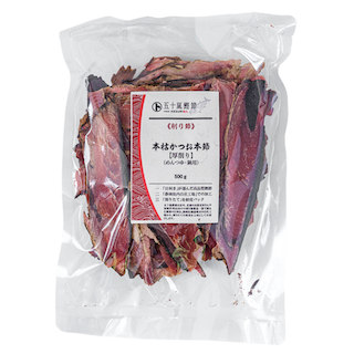 薄く削ったものと比べてお湯にたくさんの節を入れることができるので、自在に濃い出汁を取ることができます。
